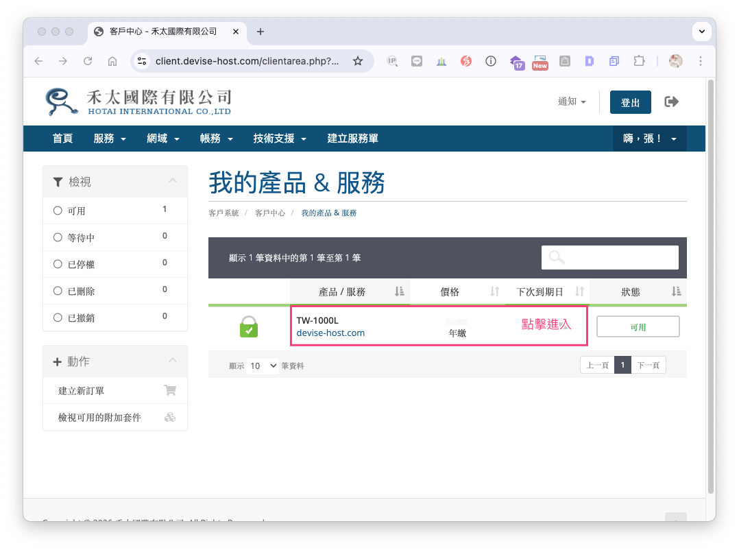 Step2,您會看到服務列表中,有您的主機,請點選進入,如下圖: